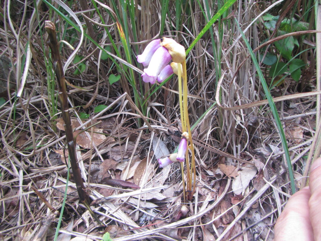 林道端の草地で地面からにゅっと茎を突き出して花を咲かせています。