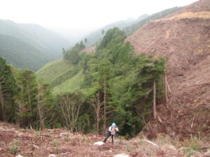 林道端の草地で地面からにゅっと茎を突き出して花を咲かせています。